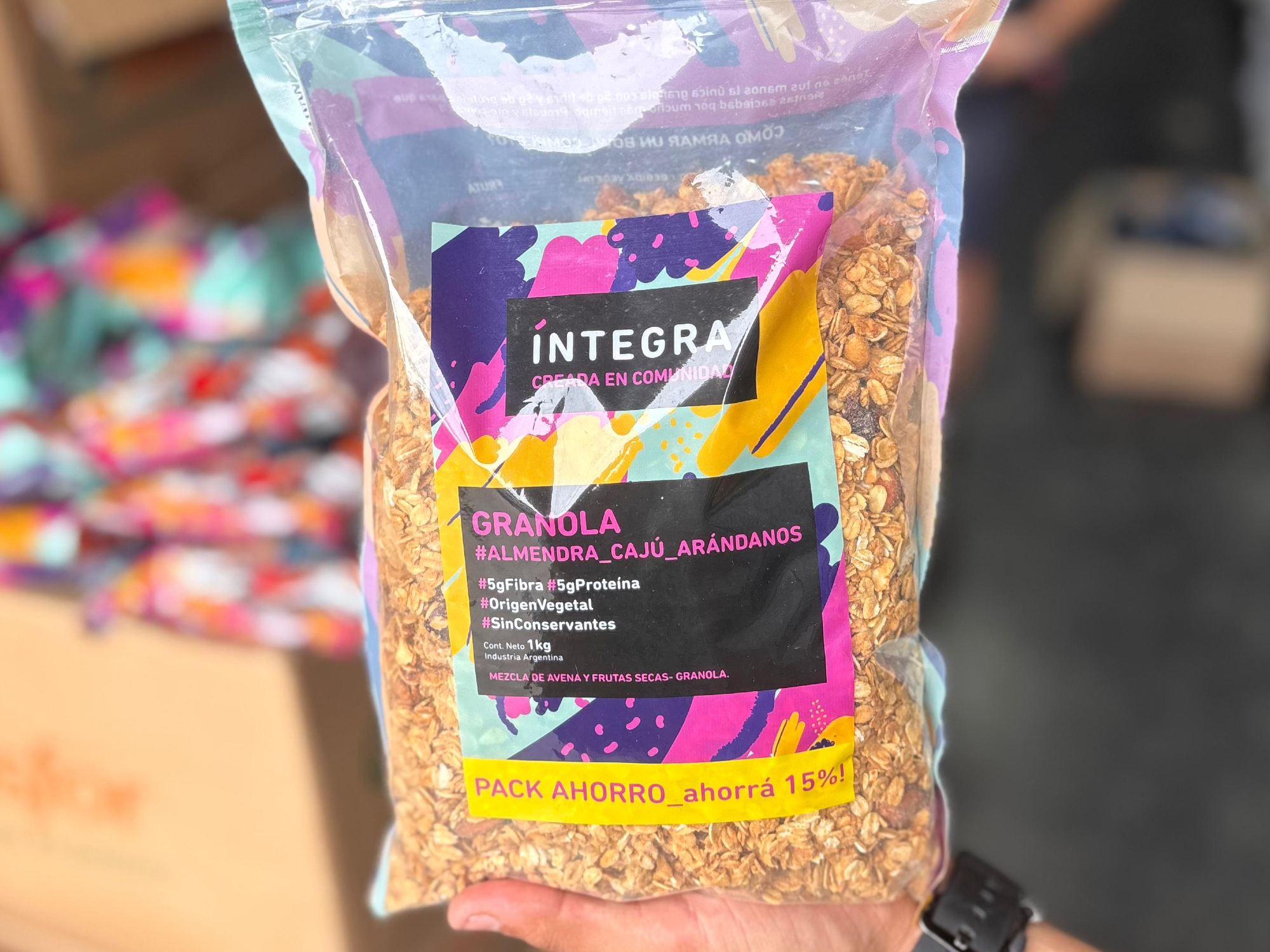 Granola x1Kg "Integra" Compartir por WhatsApp Copiar enlace Presentaciones Seleccioná las opciones que quieras.con Almendras, Cajú y Arándanos$19.816,01con Chocolate, Cacao y Almendras$19.816,01 Observaciones 0 / 150